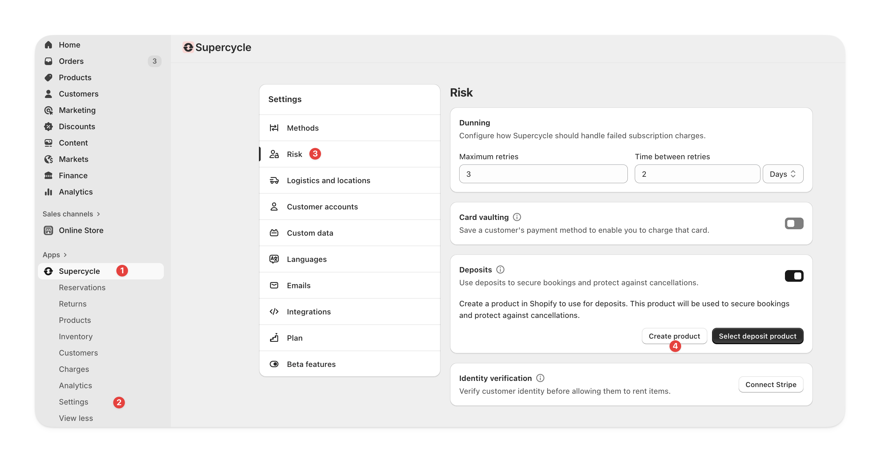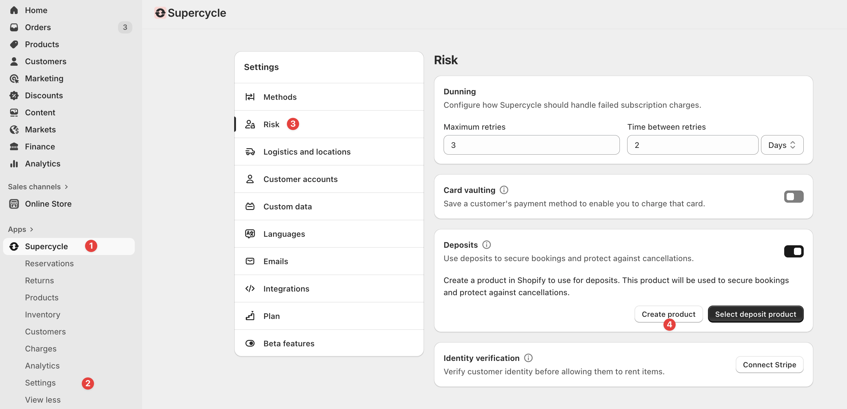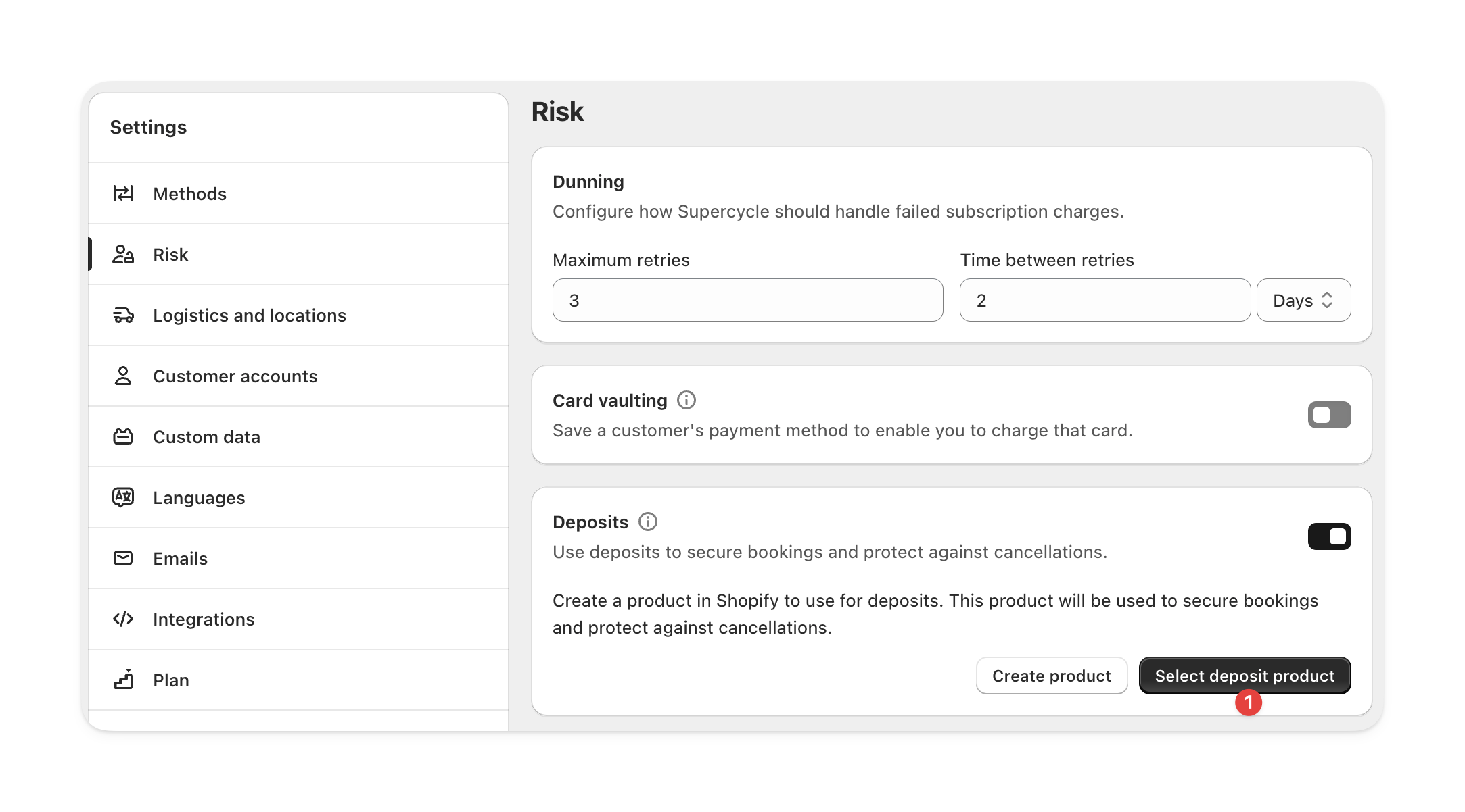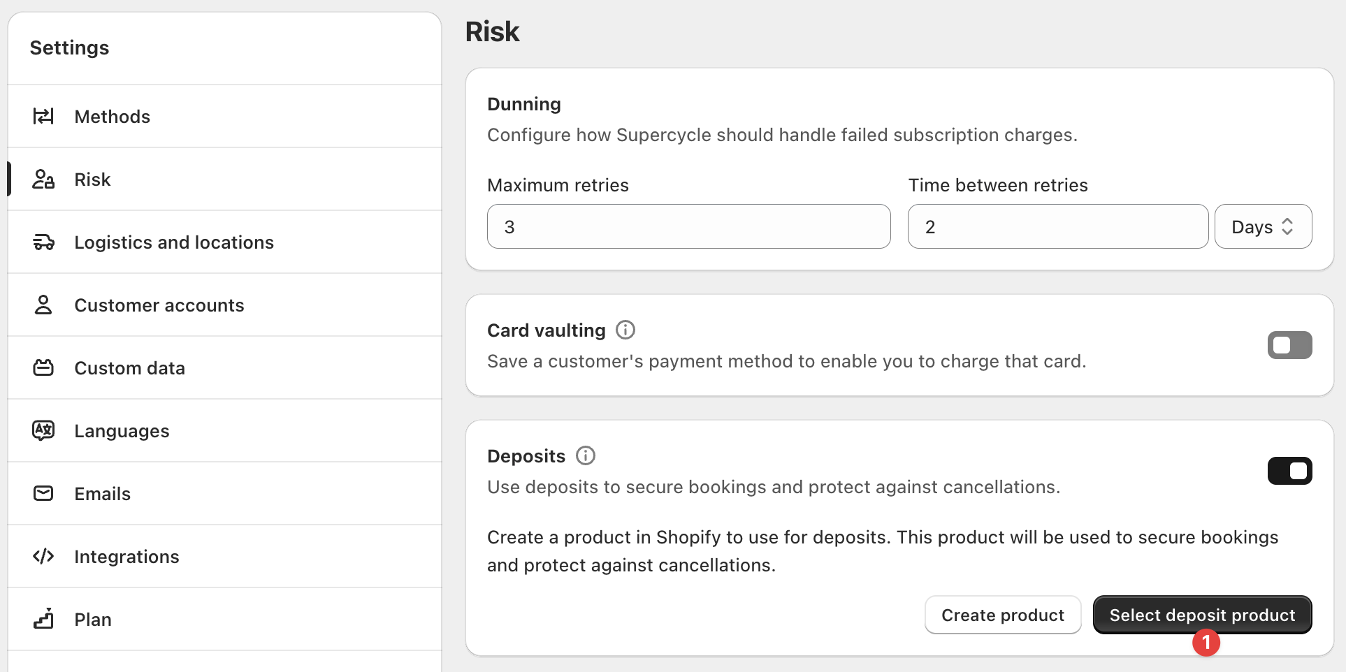 In your Shopify admin, navigate to Supercycle > Settings > Deposits.