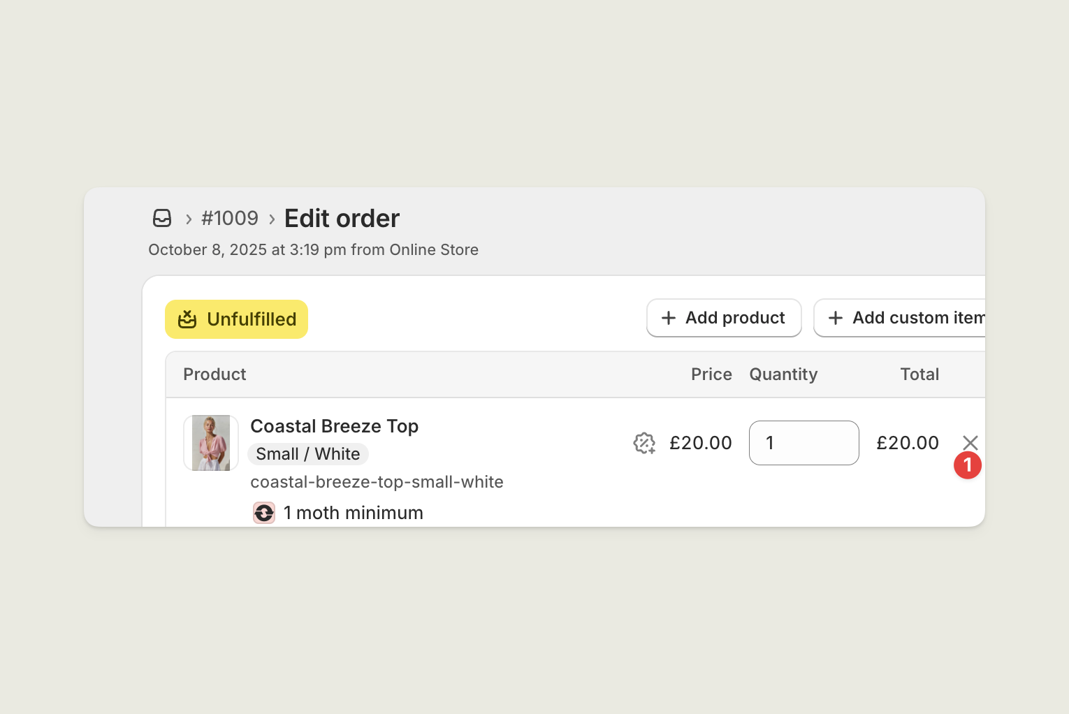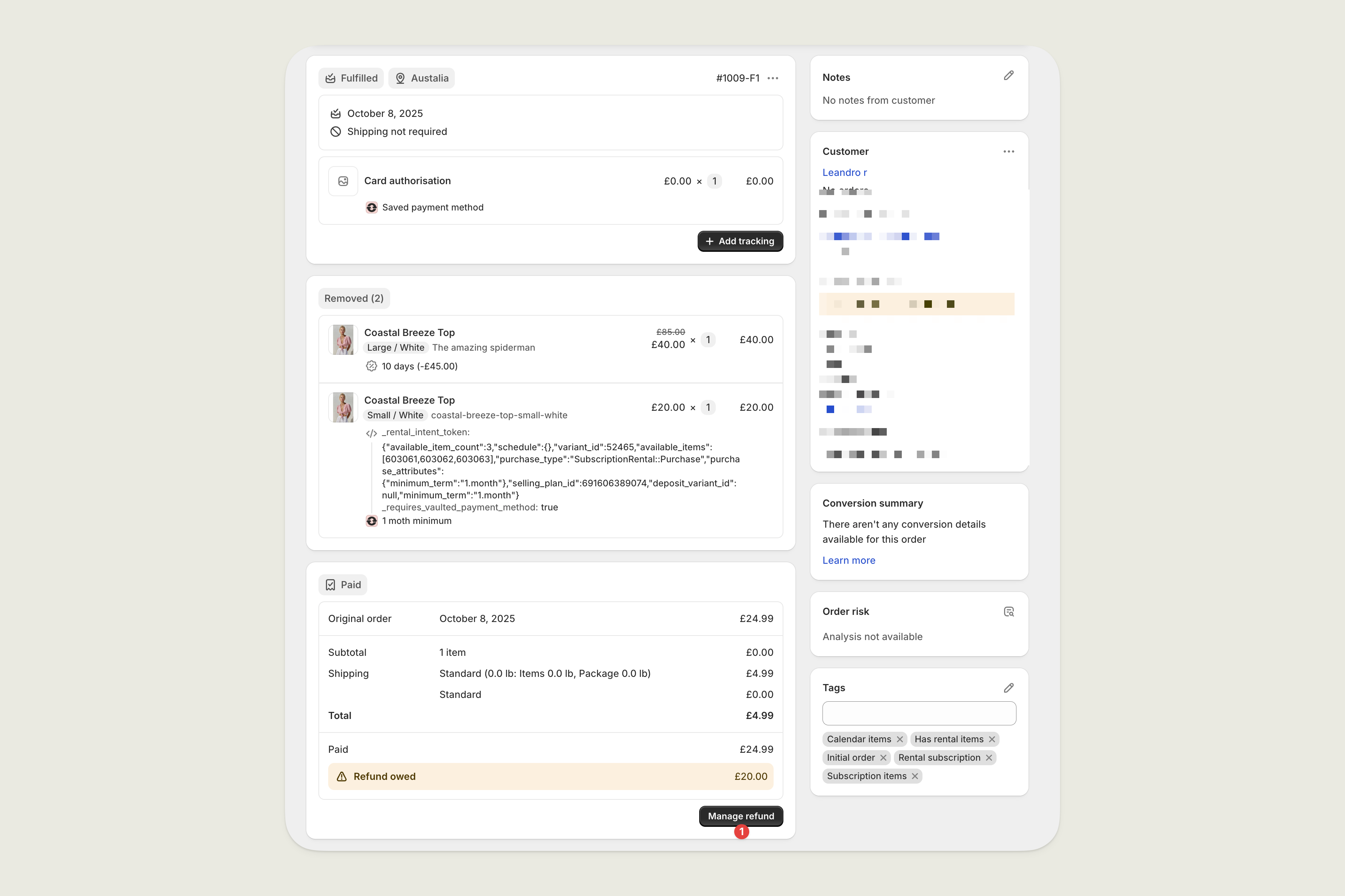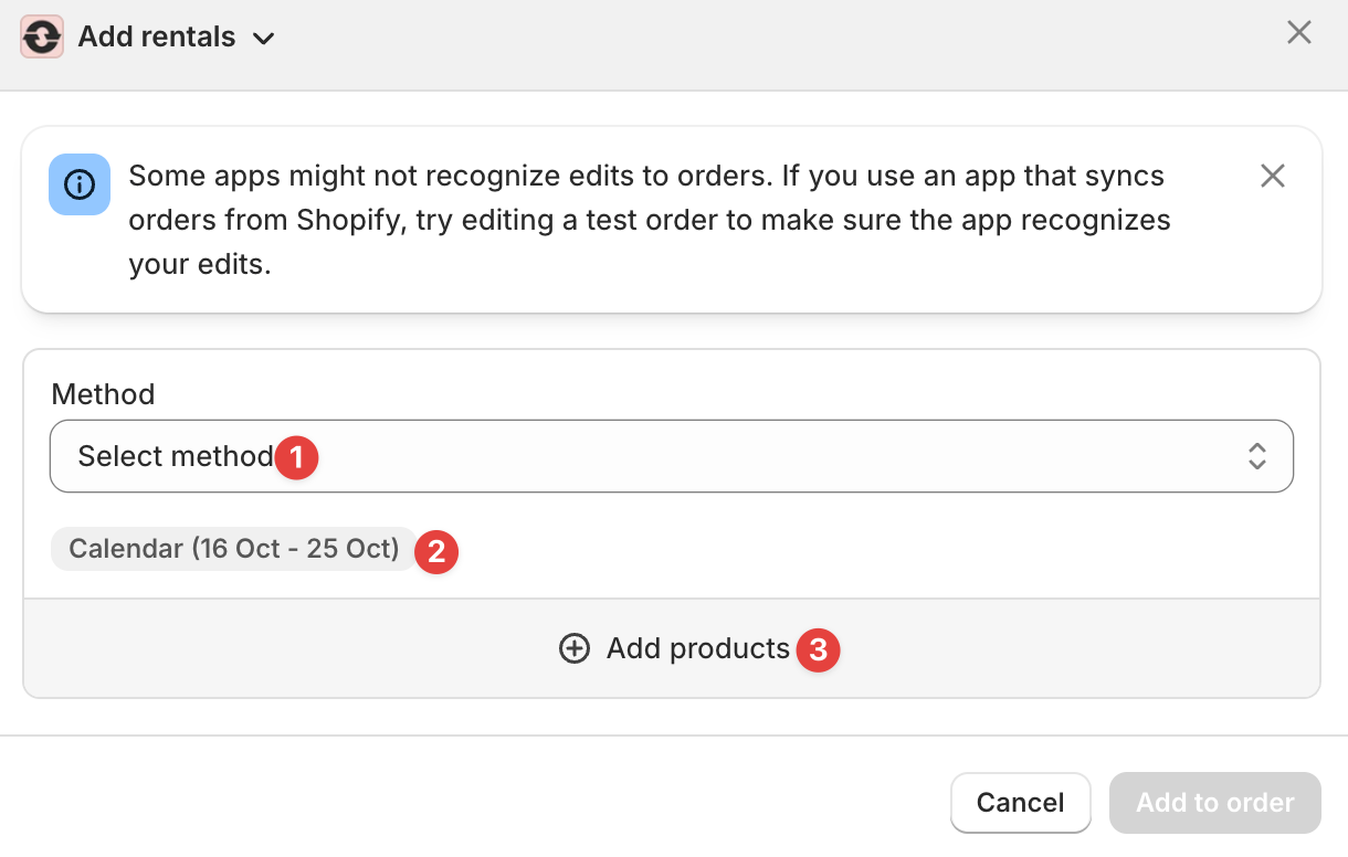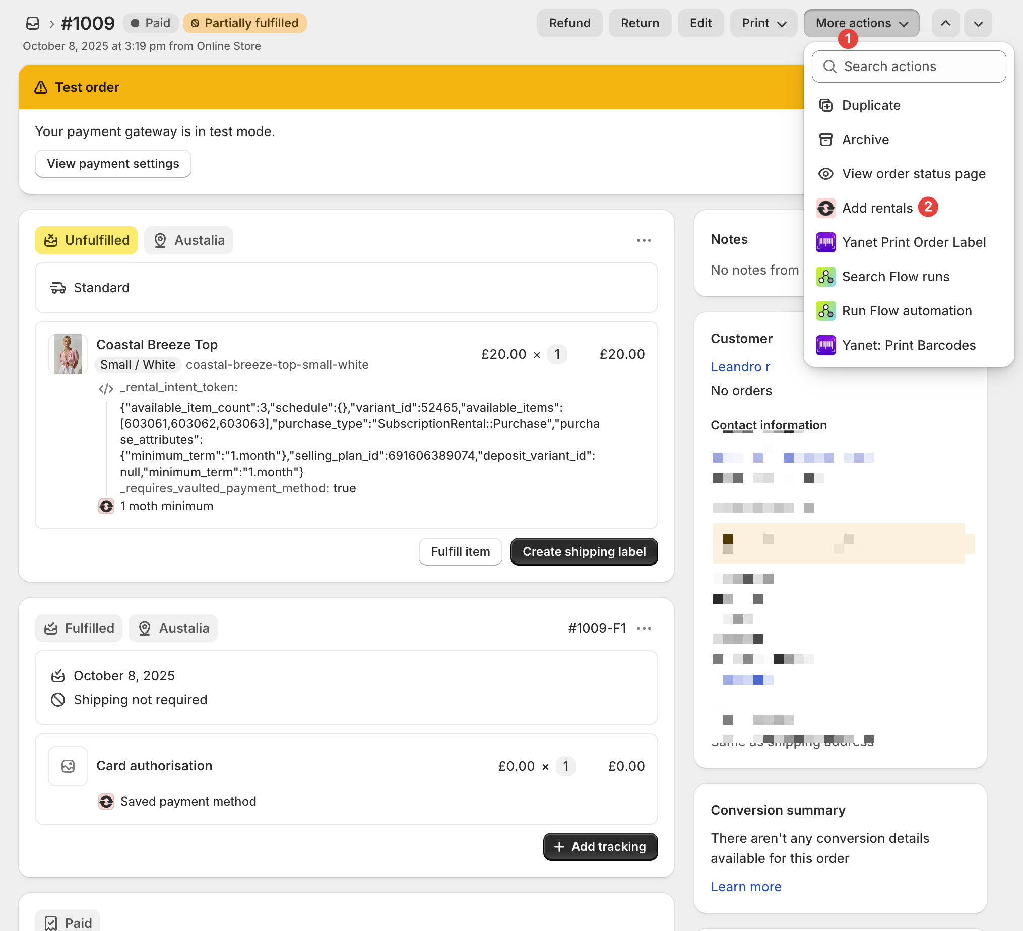 If adding rentals increases the total order value, Shopify will show the outstanding balance.1
