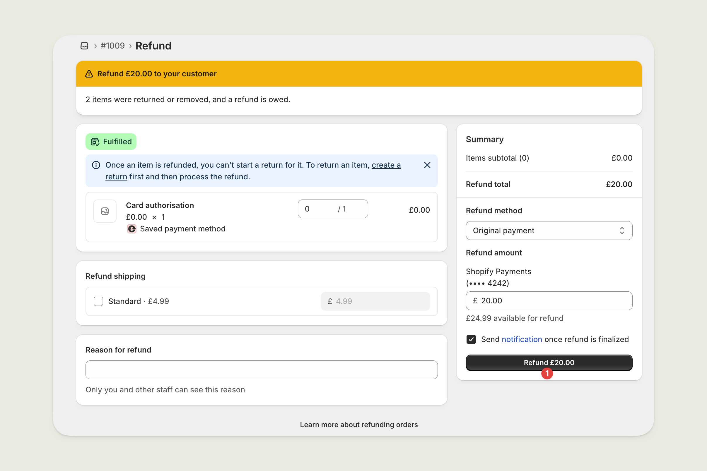 If removing rentals lowers the total order value, you’ll see a Manage refund button.1