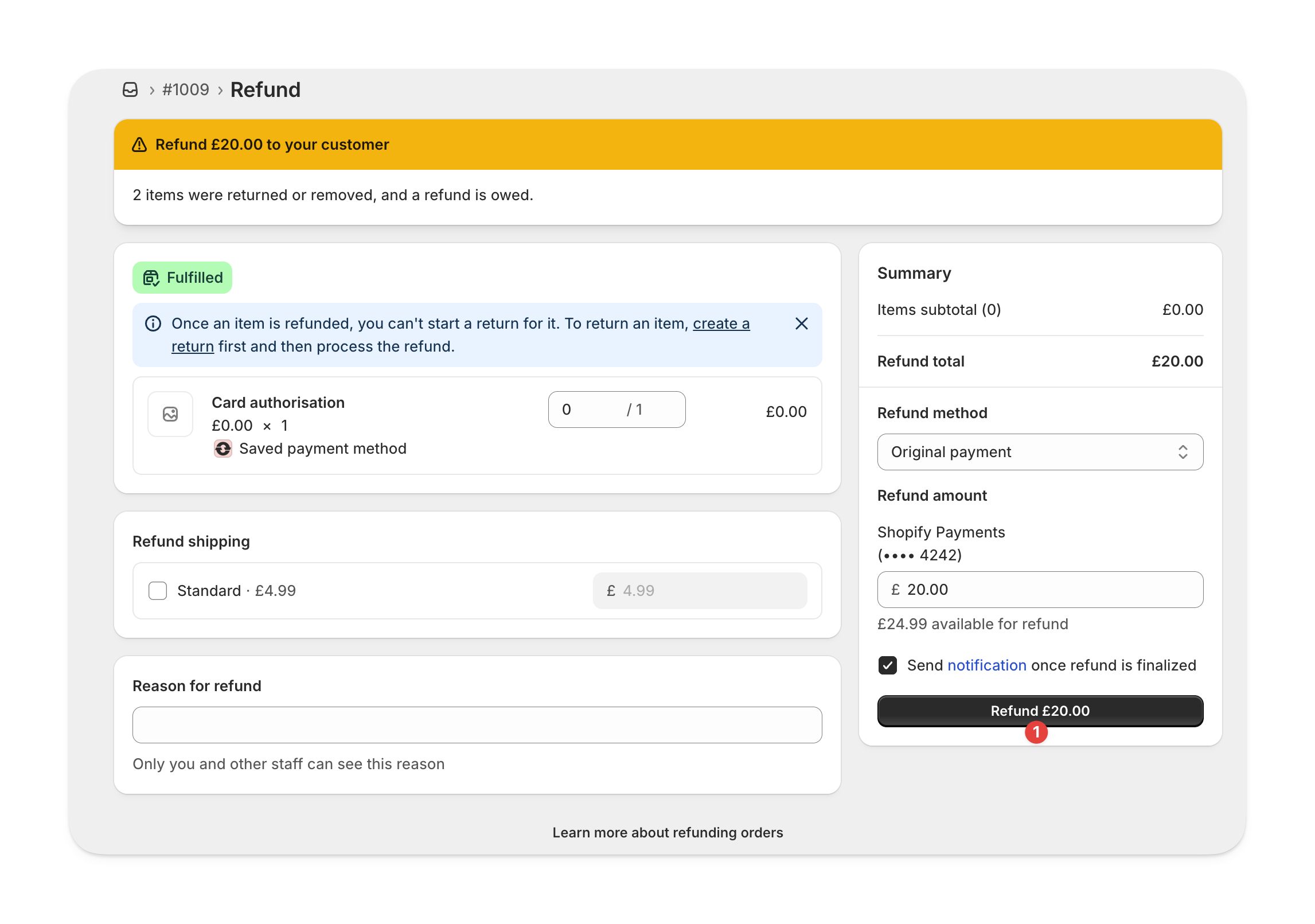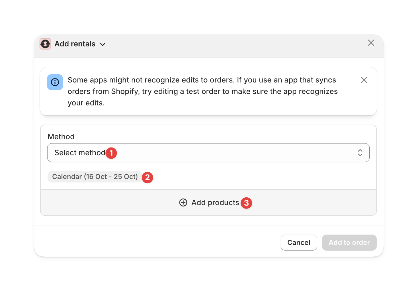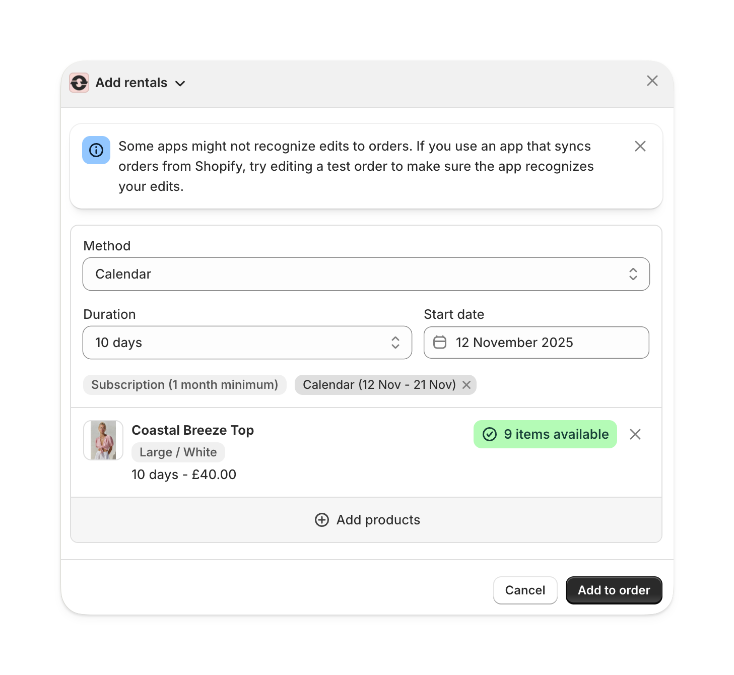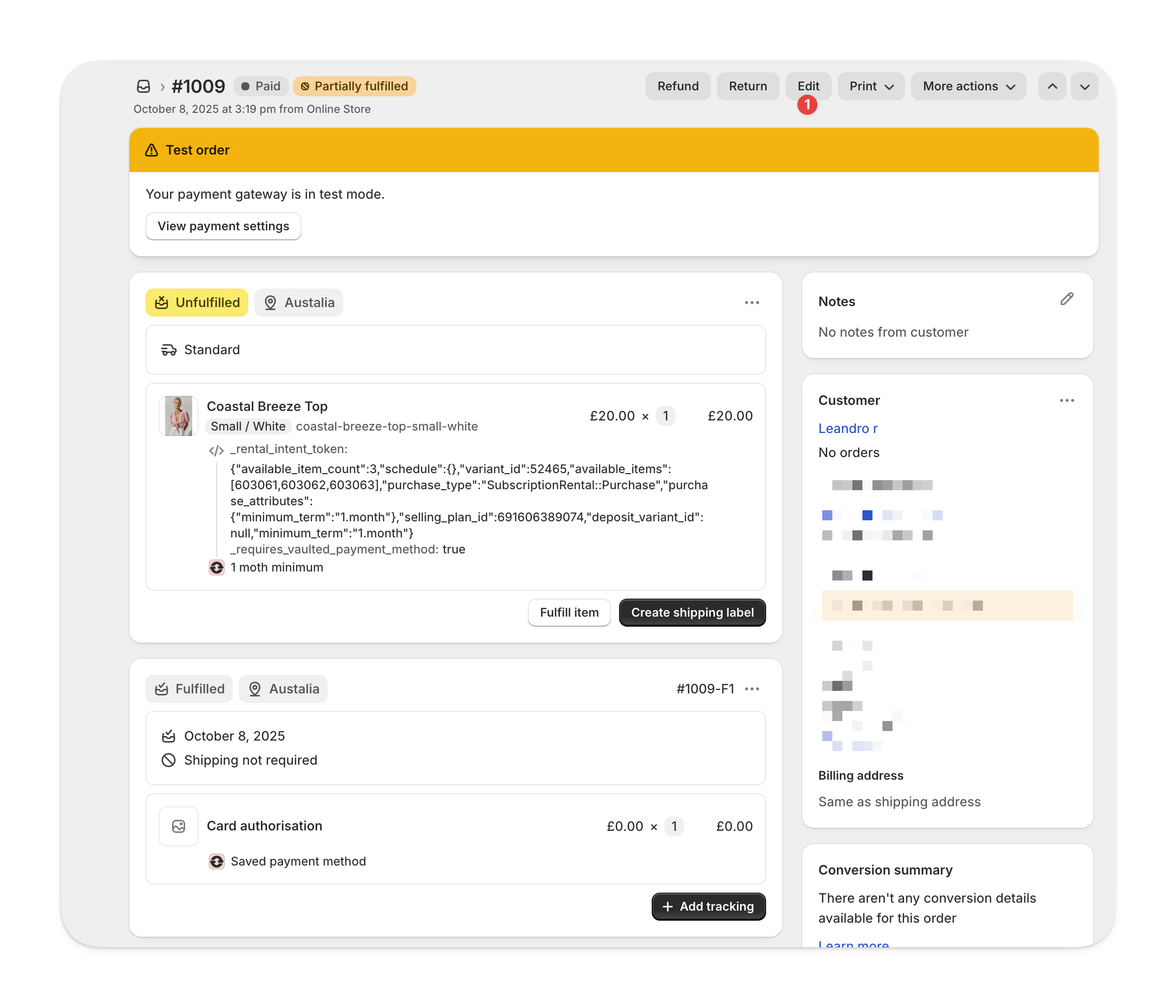 If adding rentals increases the total order value, Shopify will show the outstanding balance.Refunding the difference