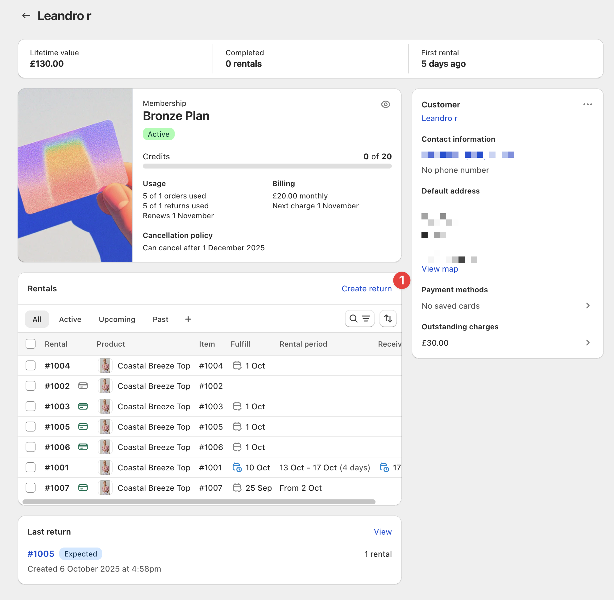 You can automatically recredit returns from changing settings in Supercycle > Settings > Membership rental.