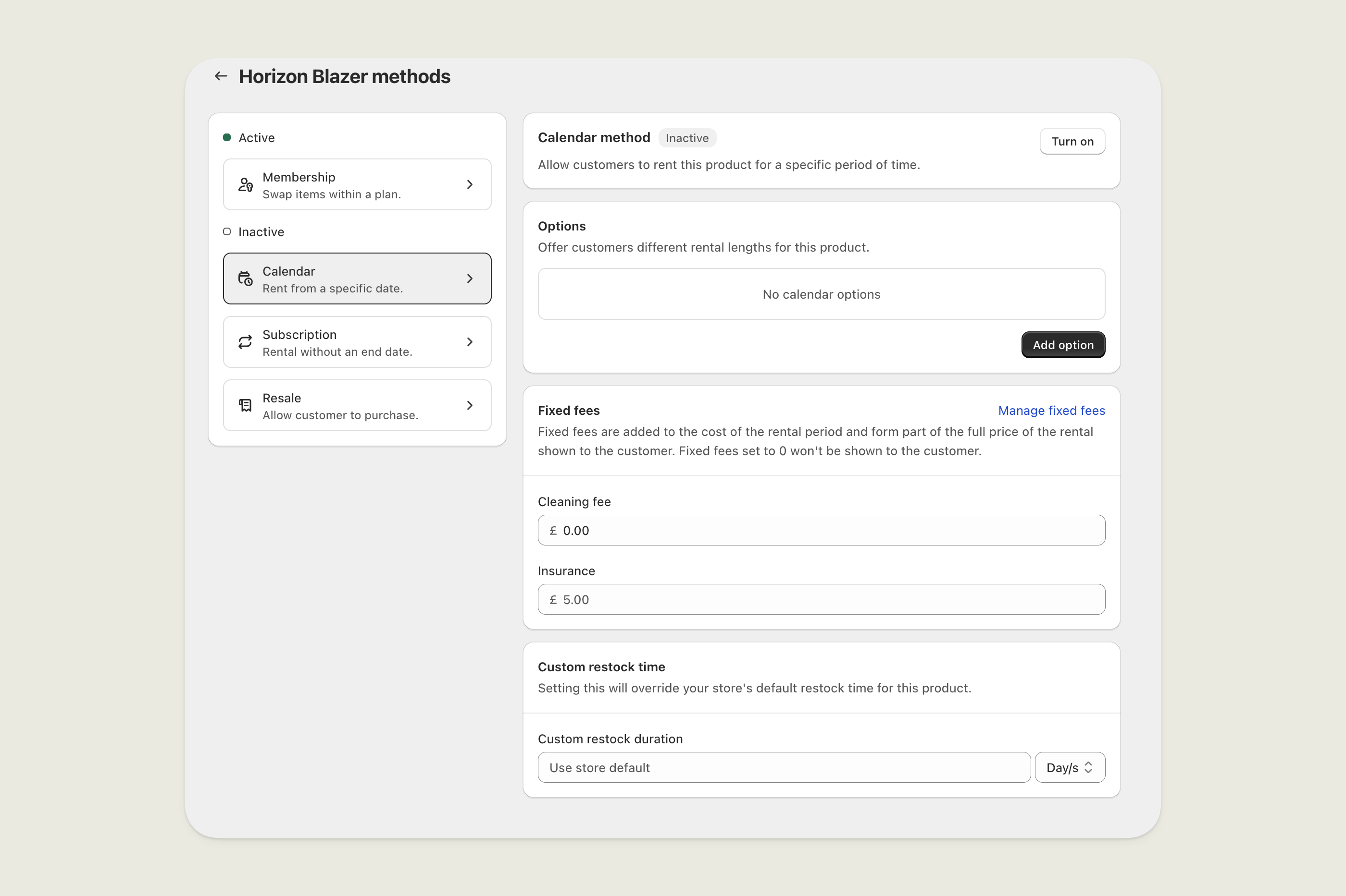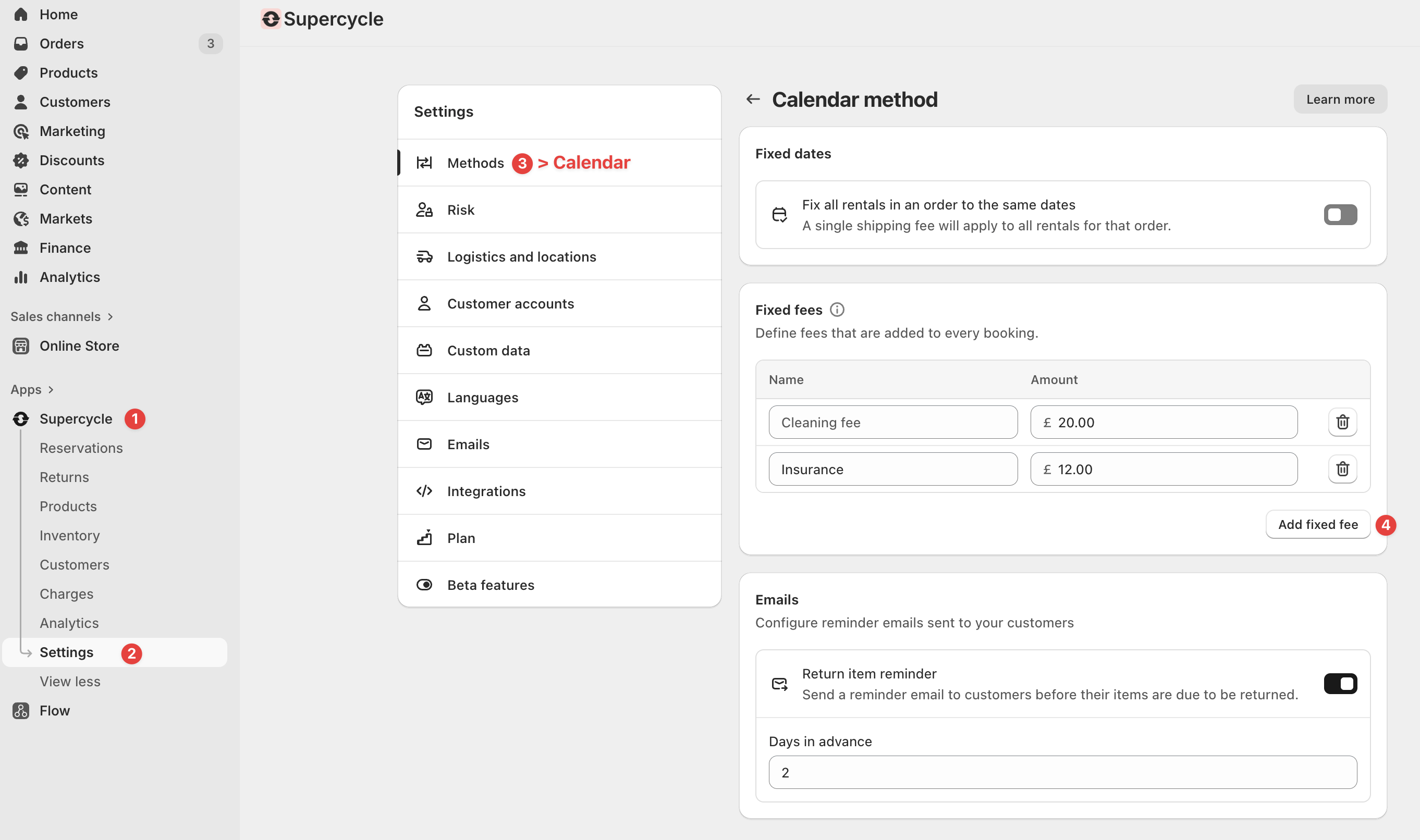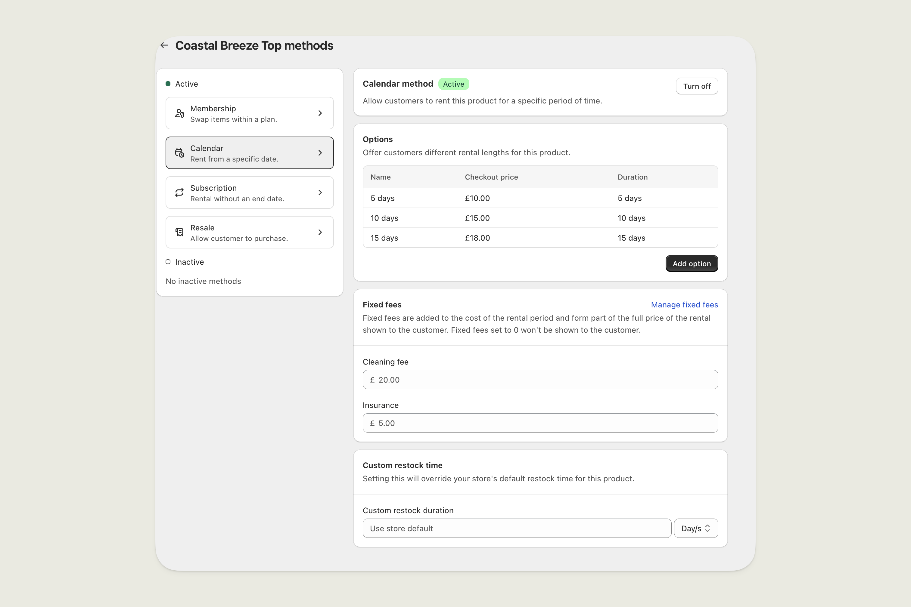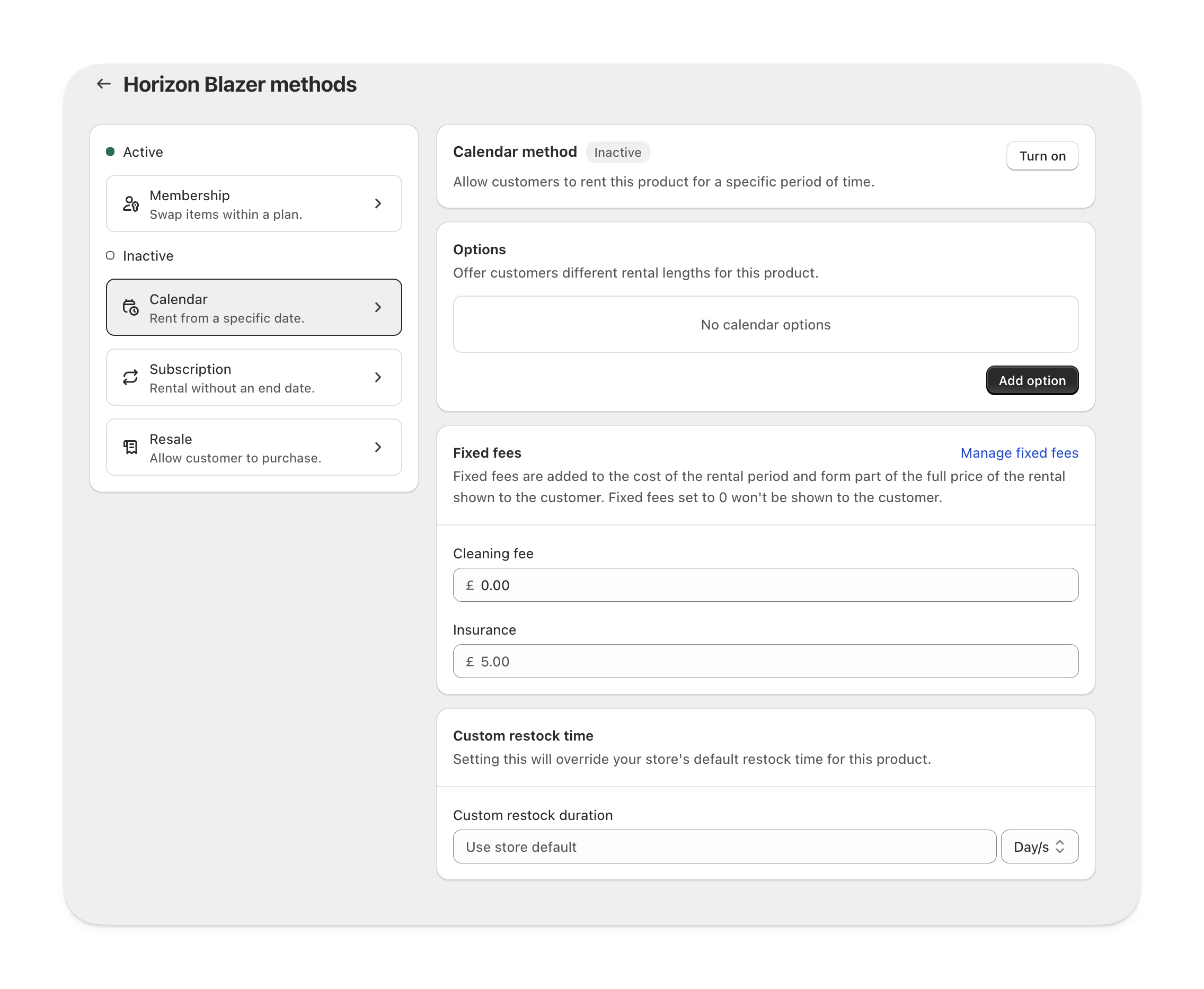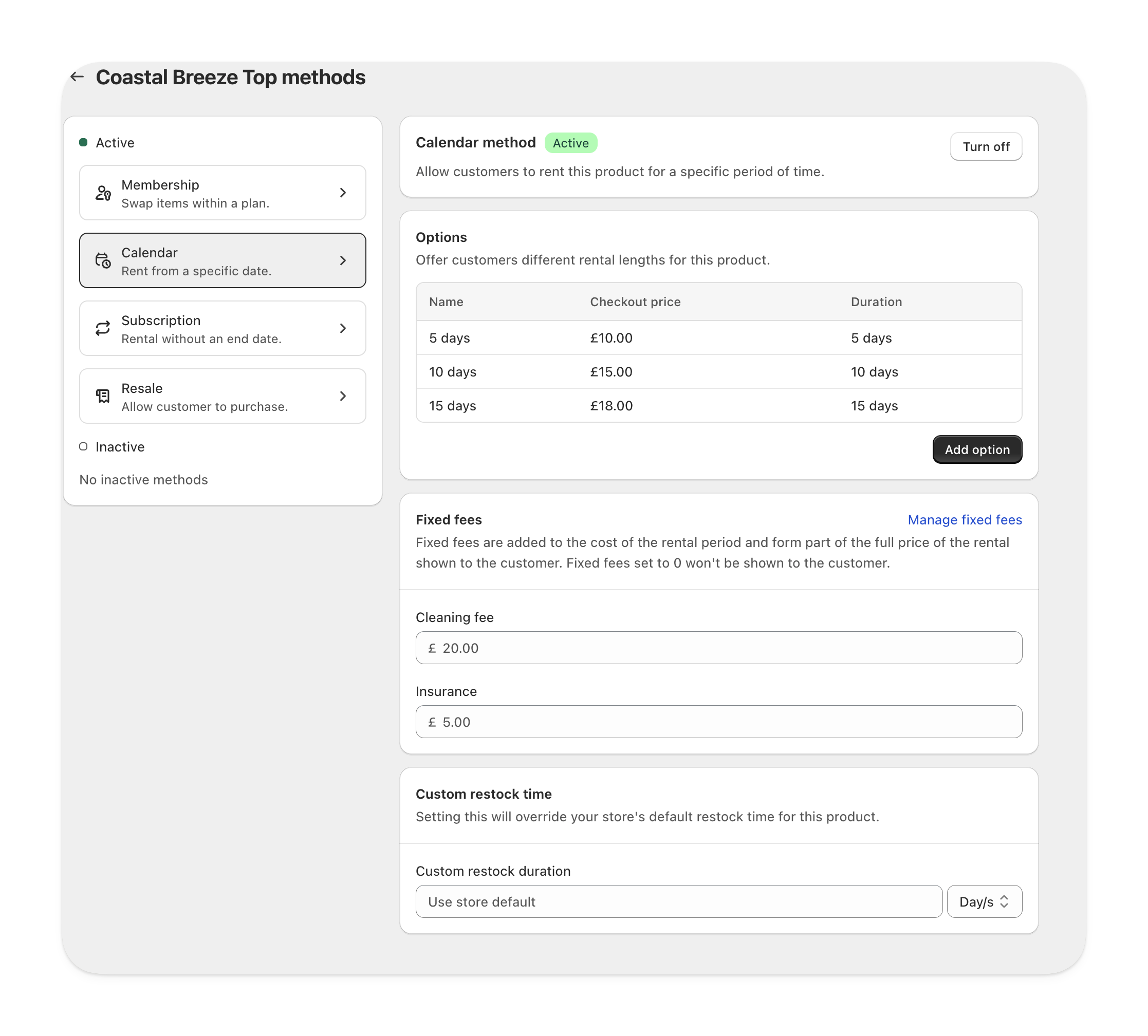 In this example the total price of a 4 day rental would be £30 + £20 cleaning fee + £12 insurance = £62.