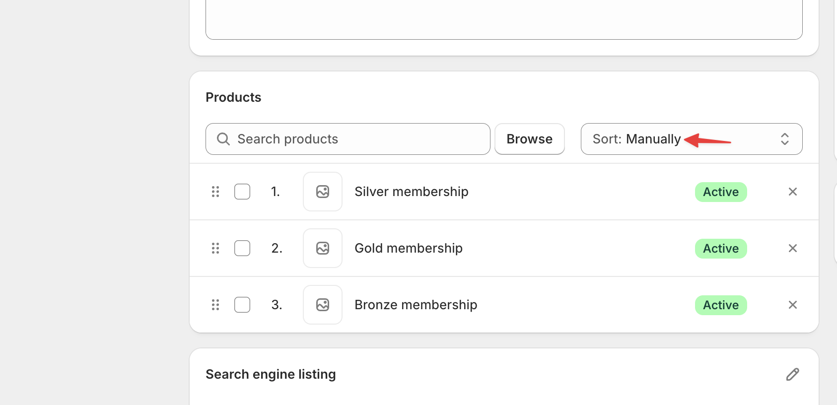 When you create membership plans, Supercycle creates corresponding products in Shopify.To prevent customers from seeing them, edit each plan product and set its status to unlisted.