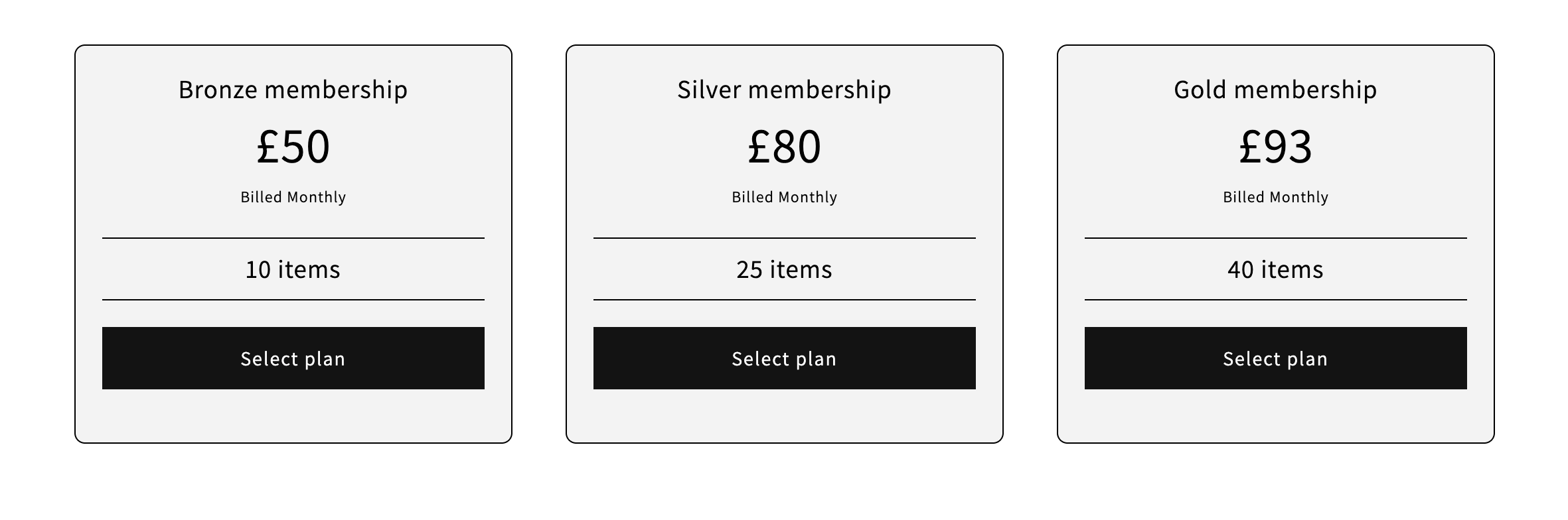 For example, you may offer a plan on a £50 monthly payment or a £500 yearly payment,