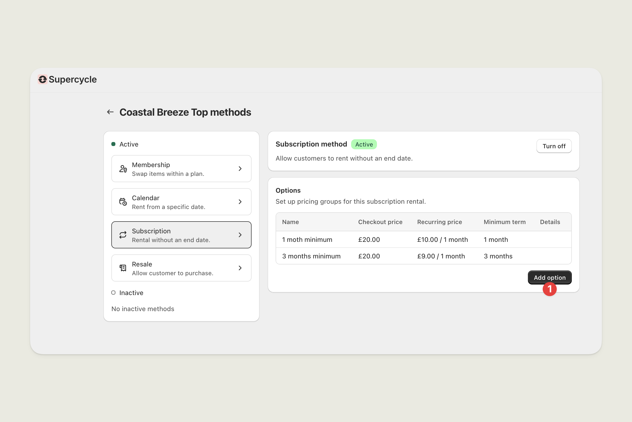 Once you’ve imported a product into Supercycle, you’ll need to enable it for subscription rental.