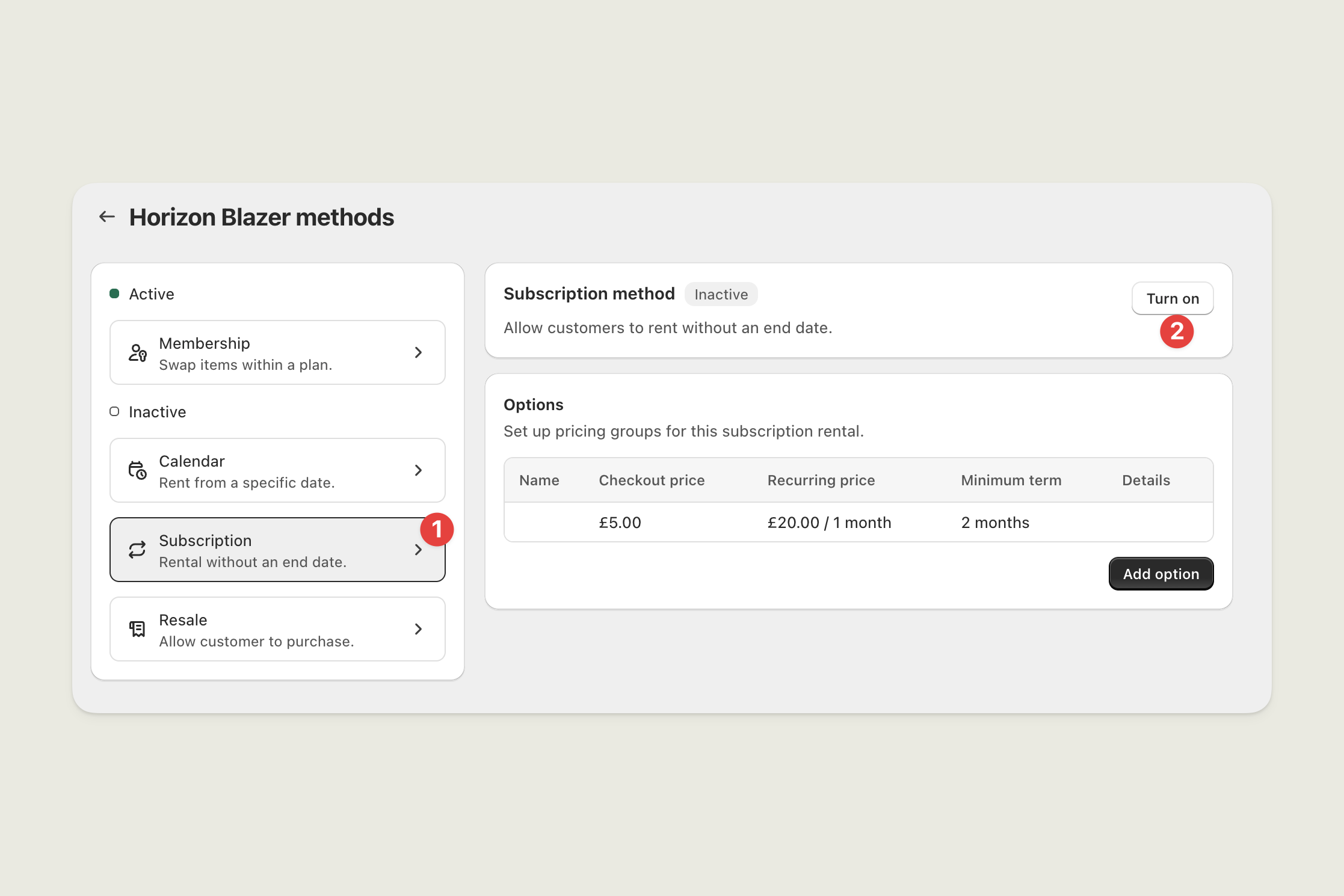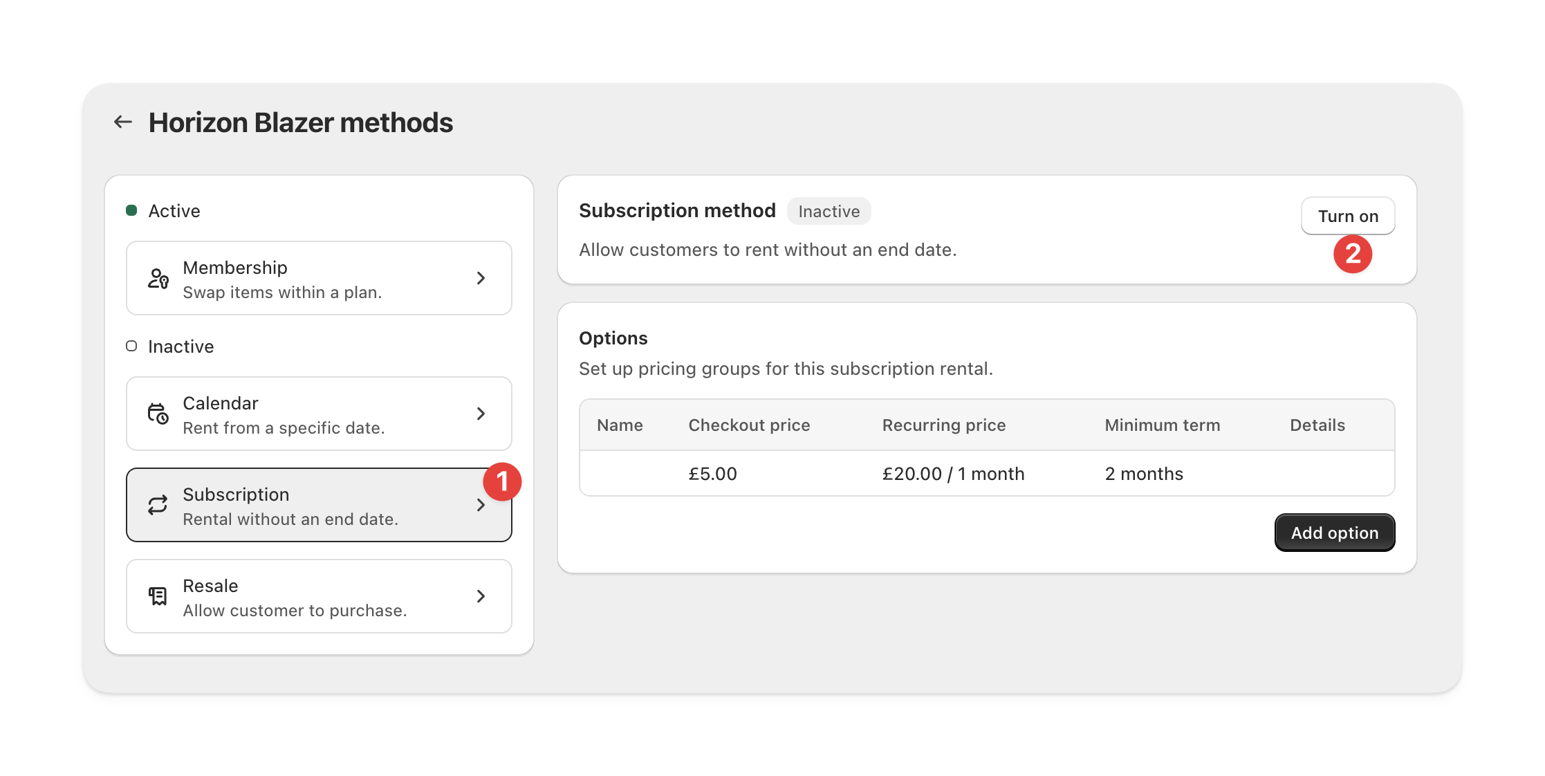 Turn on product for subscription rental